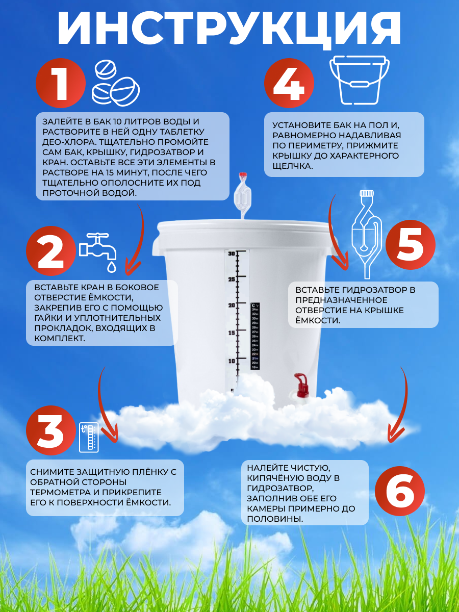 Емкость для брожения; виноделие; Бак для брожения; Гидрозатвор; Комплект для брожения; Набор для брожения; пивоварение; самогоноварение; Ёмкость